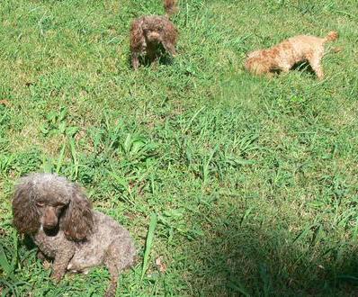 Jax Jackson is a Brown Sable Male, he was born brown but has lighted to this beautiful brown sable color, he weights 4.5 so he is borderline Teacup and Tiny Toy, He came from E & J Poodles,and has some of there best teacup bloodlines, his daddy only weighted 2.5 lbs, and he has a lot of Teacup siblings, Jackson is very gentle and very sweet, his worse problem is he will bark and jump on your leg when I am taking them outside to potty, he wants to know he is special and wants me to pack him out, he usually gets his way, better than hearing him bark, he usually is only vocal when he is going outside. That look in the center pic is the one I get when he wants picked up, his eyes are not red, the flash made them red